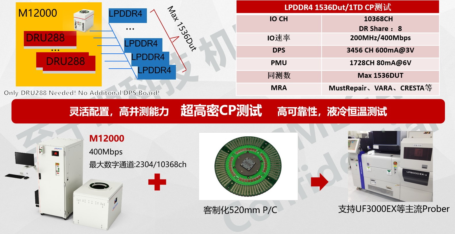 M系列產(chǎn)品擁有超高密和集成化資源,在存儲(chǔ)器測(cè)試方面具有非常明顯的優(yōu)勢(shì)。該系統(tǒng)最高可以配置10368 IO+3456 DPS+1728 PMU的測(cè)試資源全面覆蓋各類(lèi)Nor Flash、Nand Flash、3D NandFlash、DDR3、DDR4、DDR5、LPDDR3、LPDDR4、LPDDR5的應(yīng)用需求。且系統(tǒng)只需配置一種DRU288資源板,而不需要再額外配置其它類(lèi)型的資源即可,可以保證客戶高投資回報(bào)率并降低財(cái)務(wù)風(fēng)險(xiǎn)。